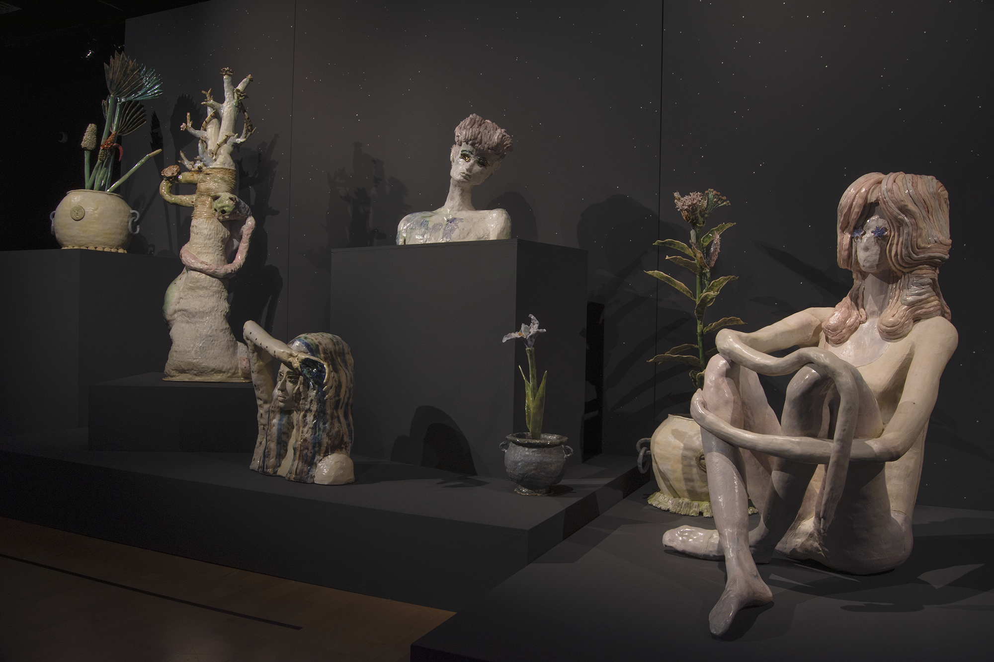 Sculptures de céramique. Exposition Jardins d’anaglyphes. Maison de la culture Saint-Laurent. Montréal. 2024